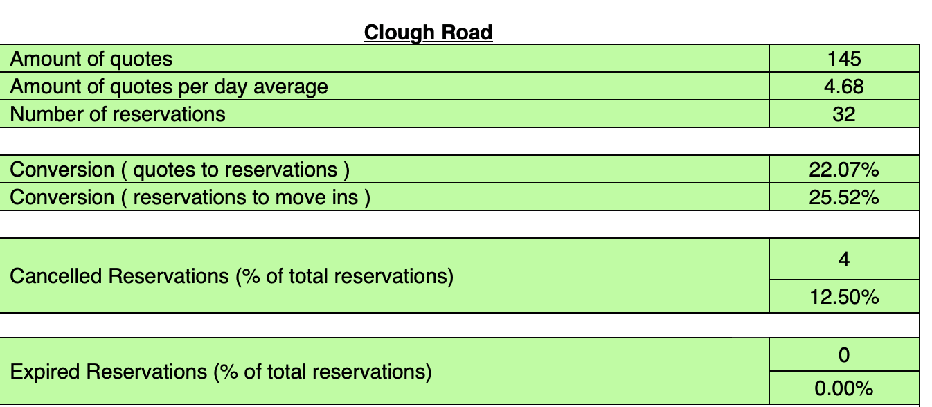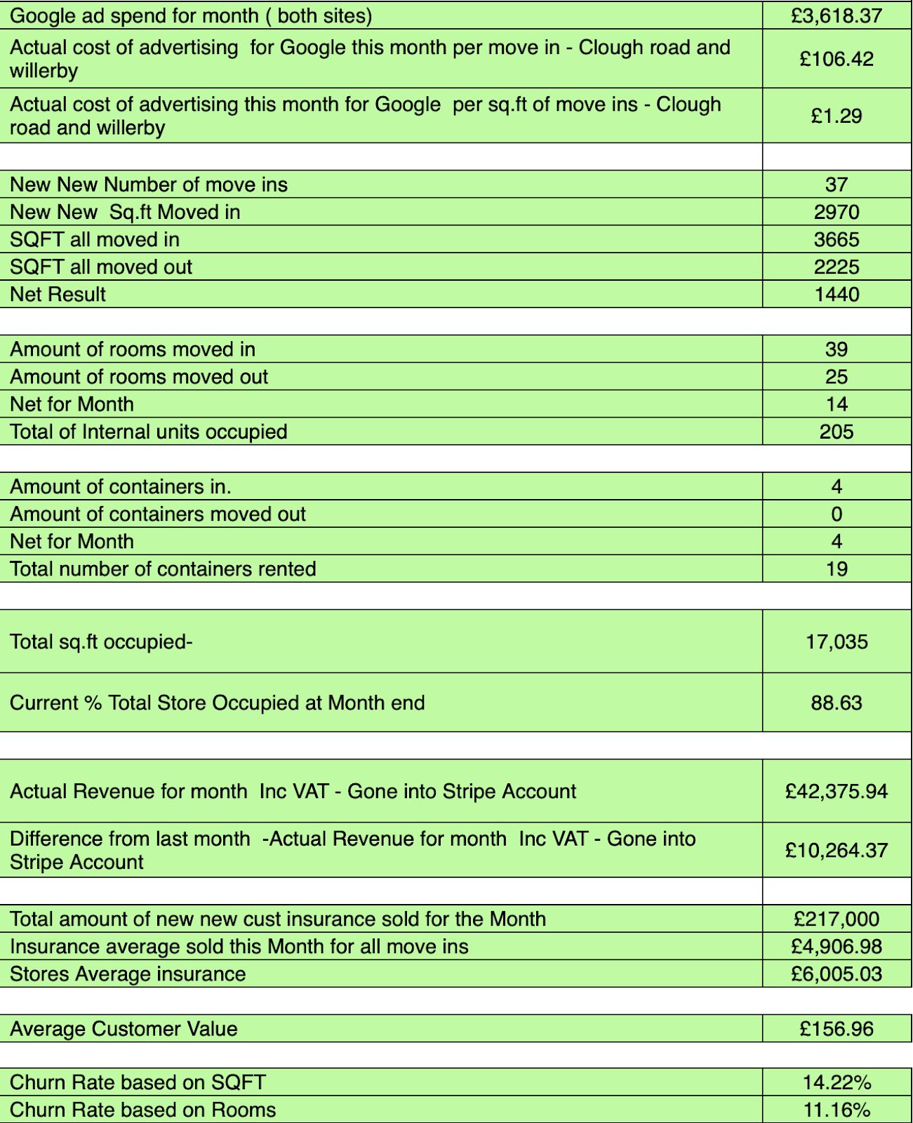 🤐 A Self Storage Tip - “Clough Road Monthly Figures”