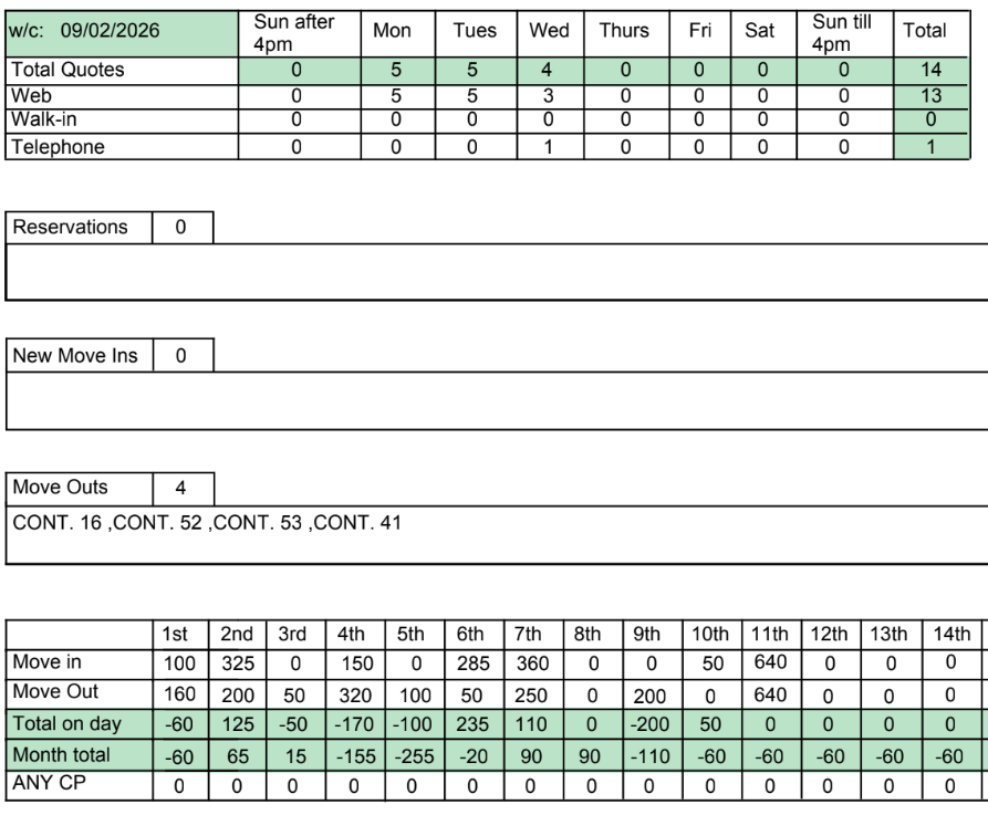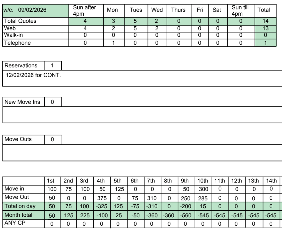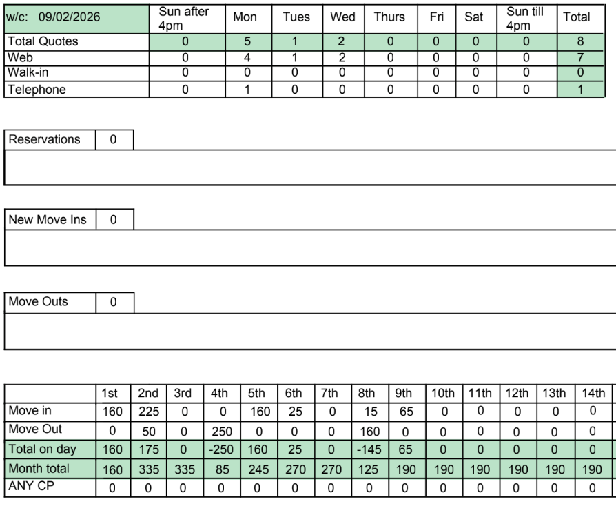 Move Ins so far this week = 0