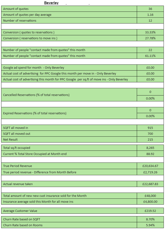 🤐 A Self Storage Tip - “Beverley Monthly Figures“