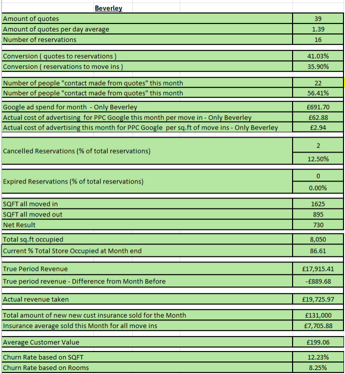 🤐 A Self Storage Tip - “Beverley Monthly Figures“