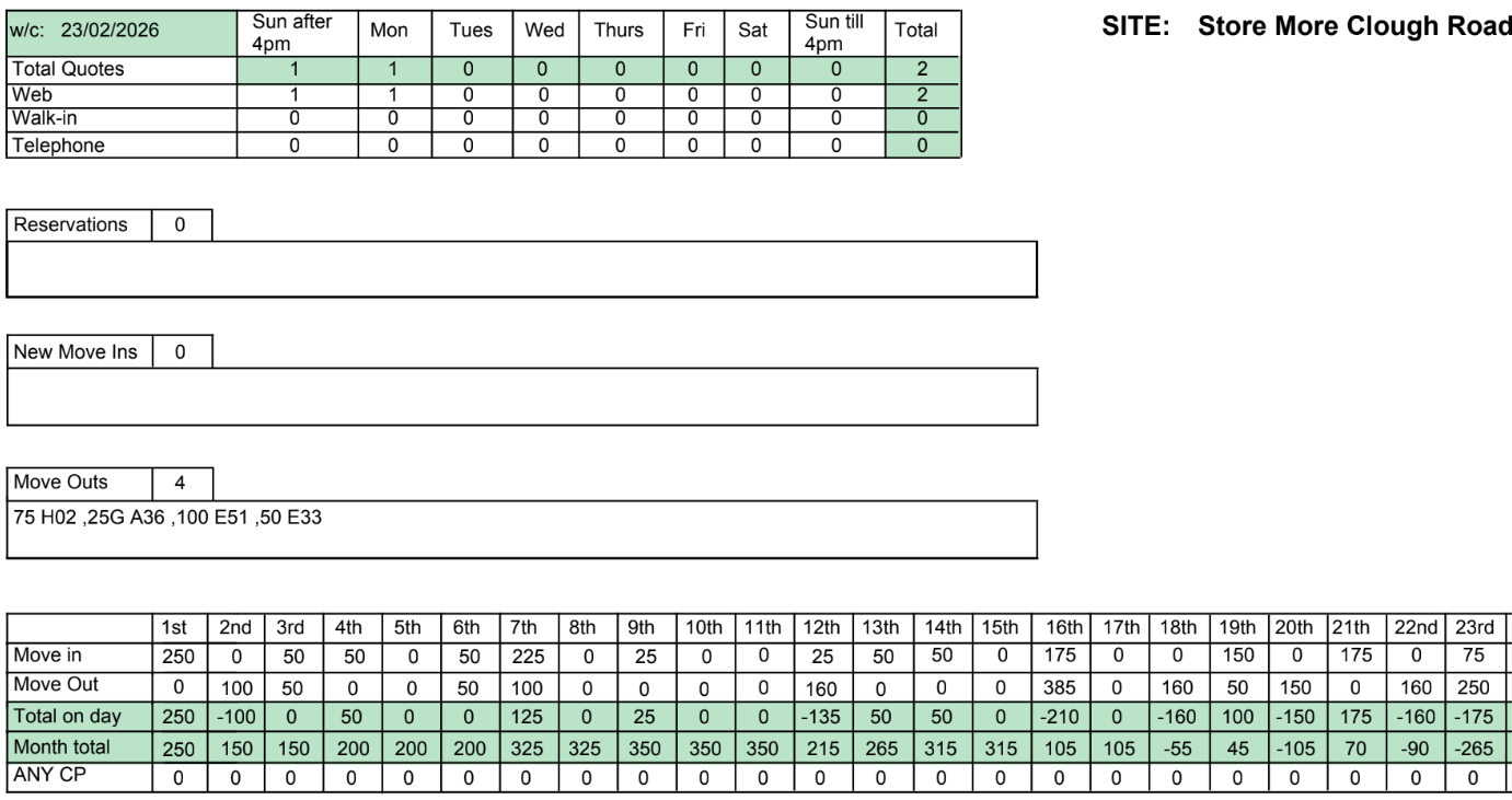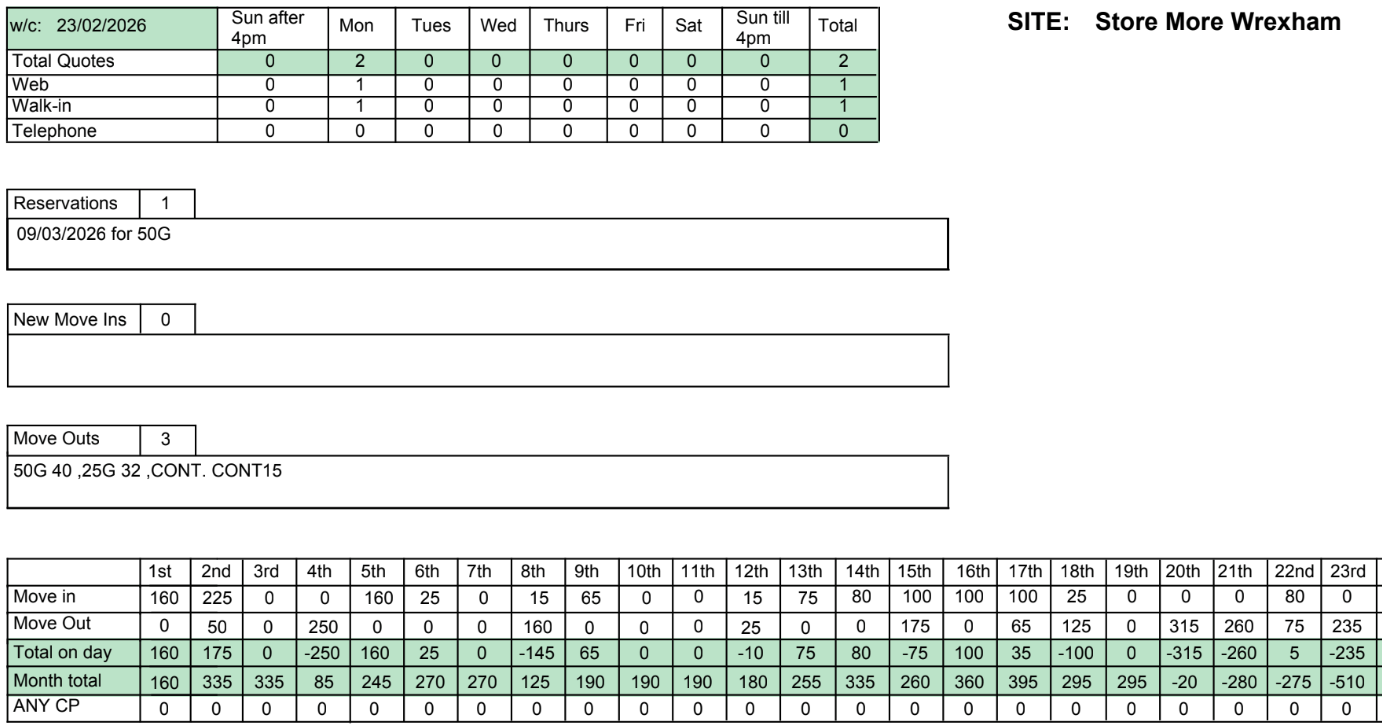 Target sq. Ft. move in of at least 3,500, February 2025 we hit 3,295 and with the new section being open and discounted rates, we should be beating last year’s results.