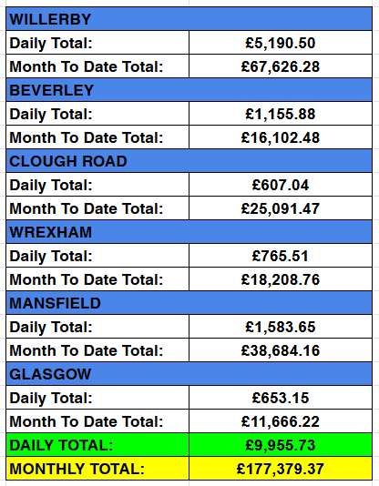 🧐 Yesterday’s Figures For Each Facility