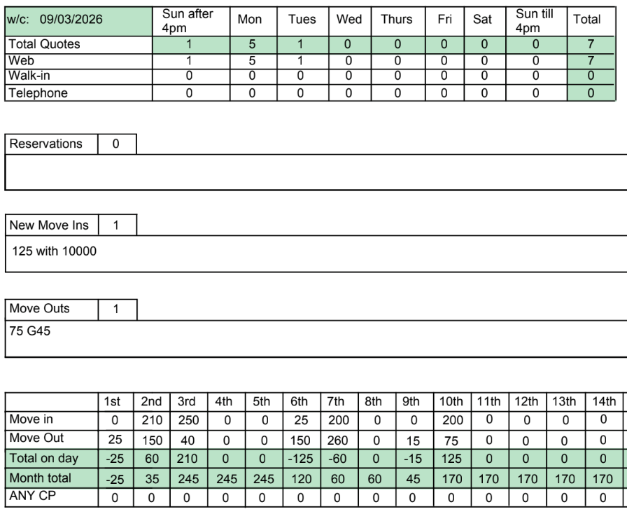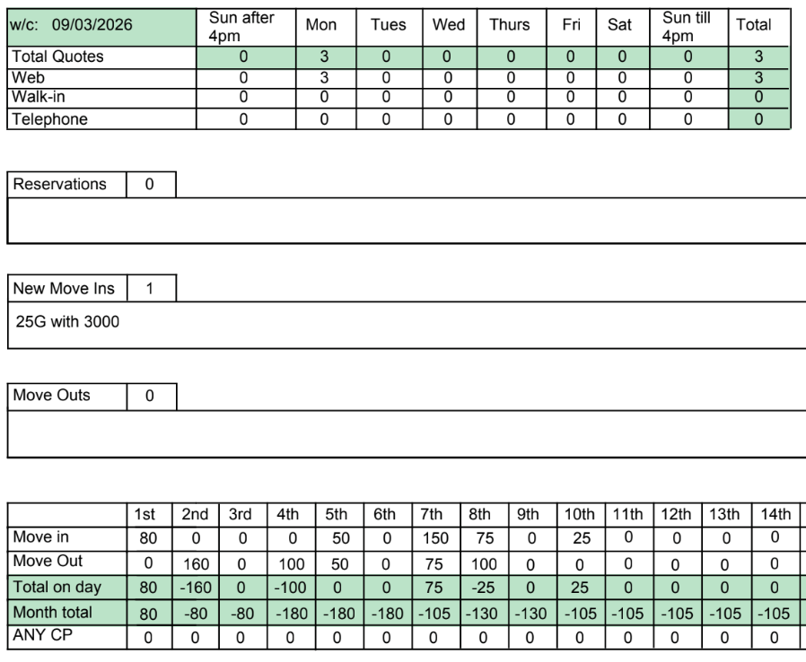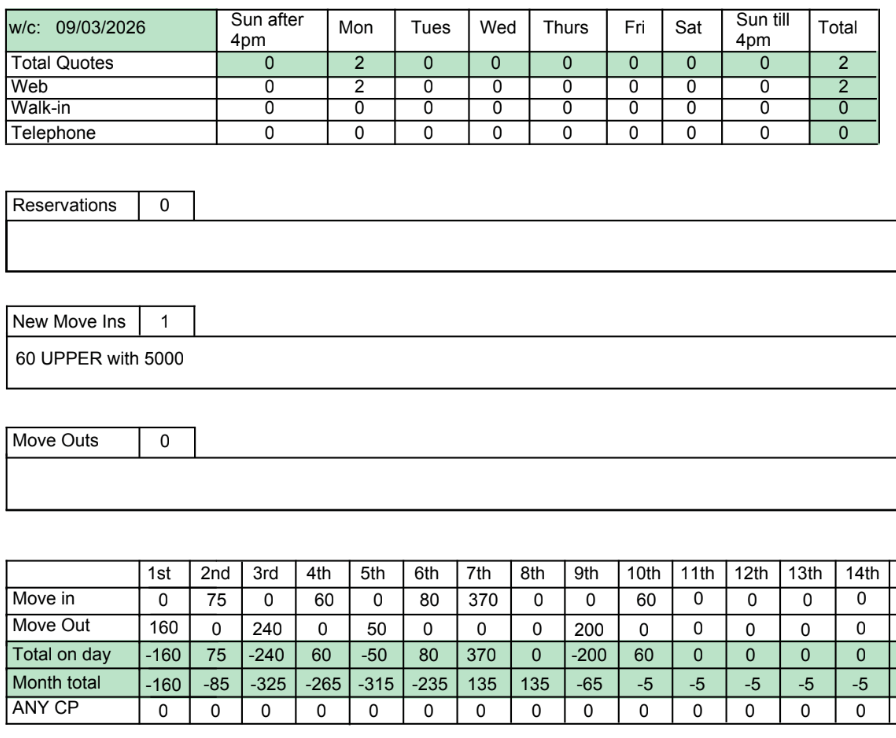 Move Ins so far this week = 0