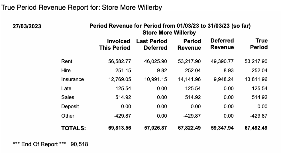 TRUE PERIOD REVENUE (Basically invoices sent so far this month)