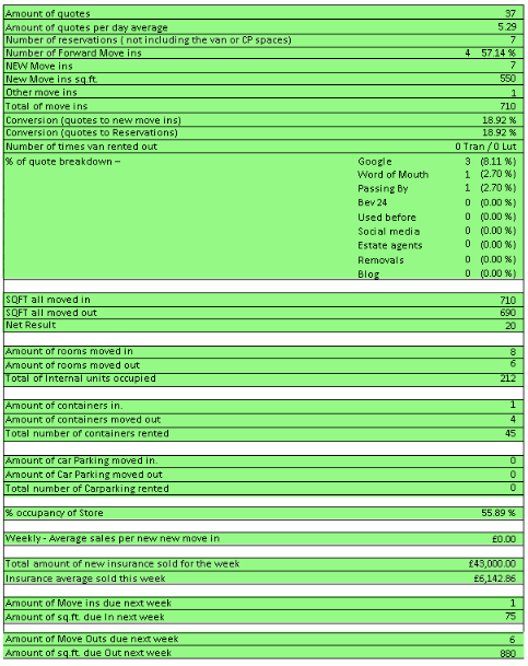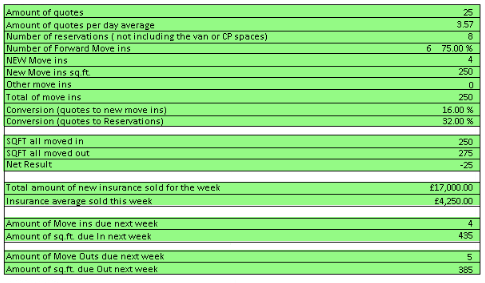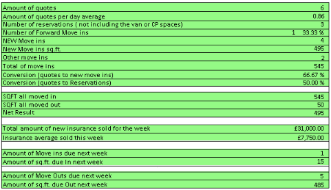 Weekly Numbers ... 33 Reservations … 2 Online and 25 MOVE INS