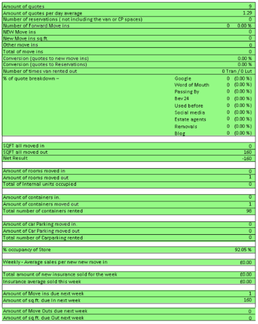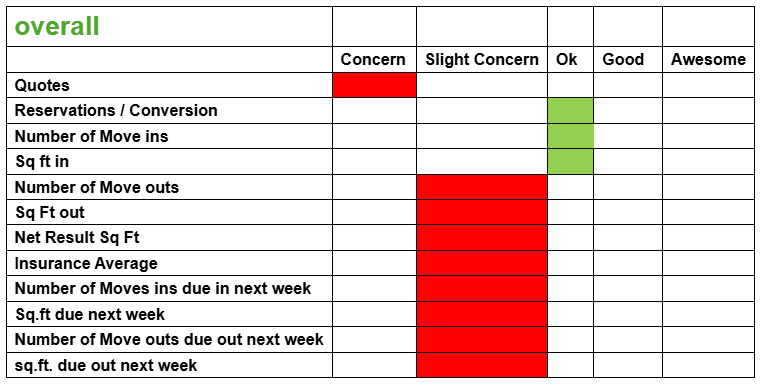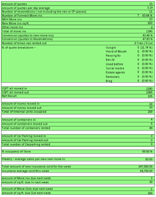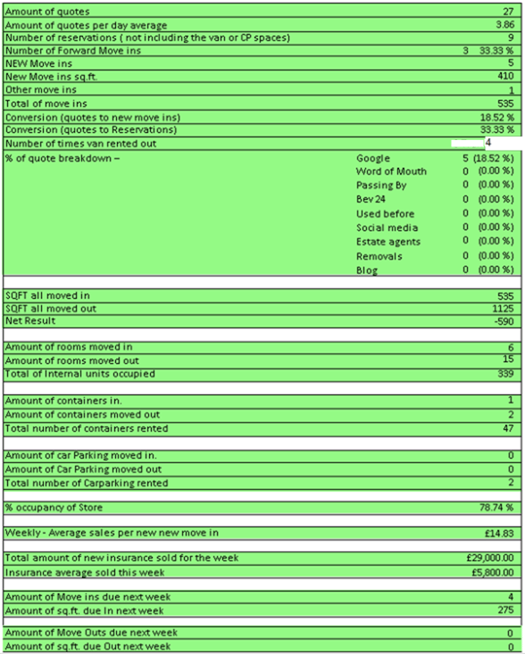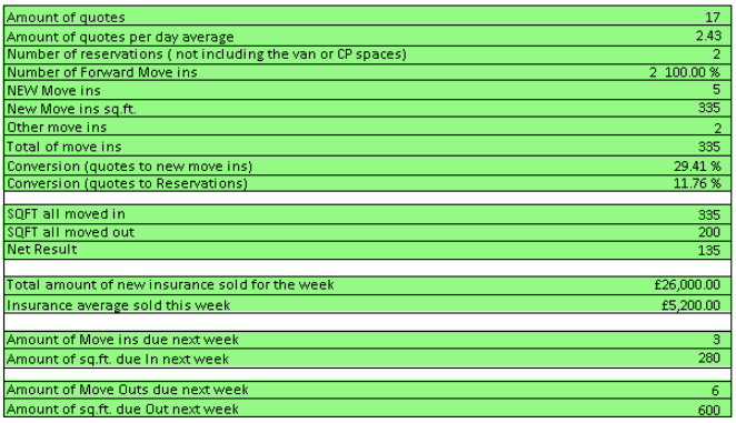 Weekly Numbers ... 31 Reservations … 4 Online and 26 MOVE INS