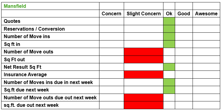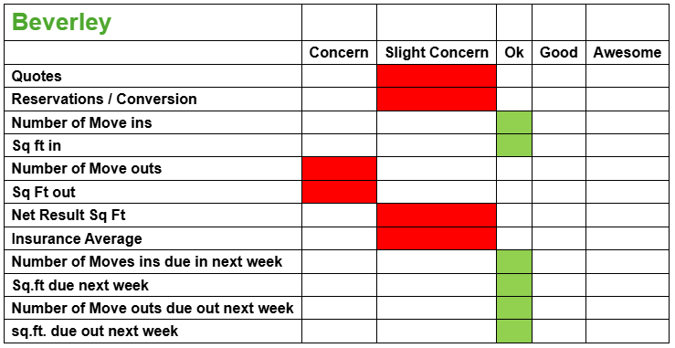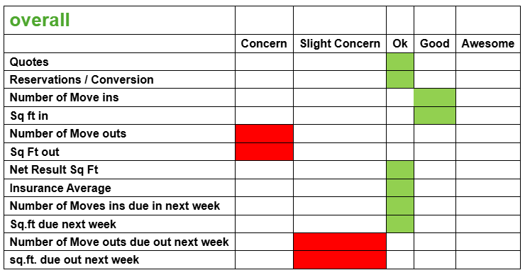 Weekly Numbers ... 36 Reservations … 1 Online and 39 MOVE INS