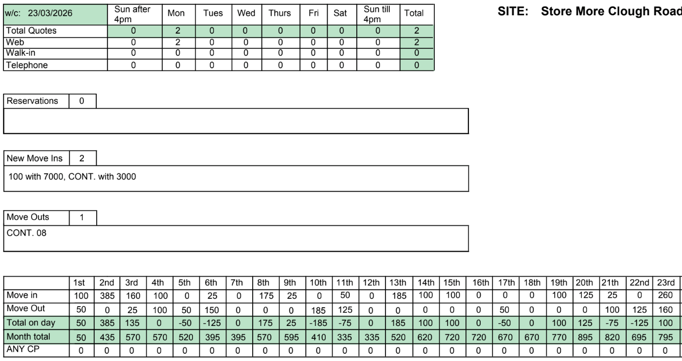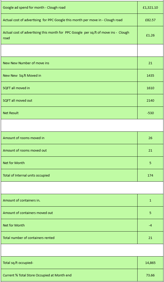 🤐 A Self Storage Tip - “Clough Road Monthly Figures“