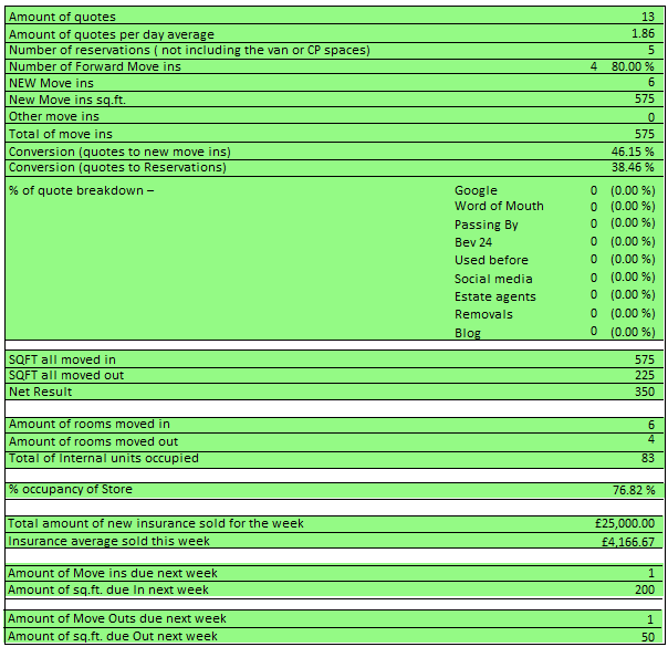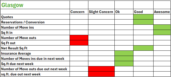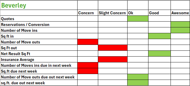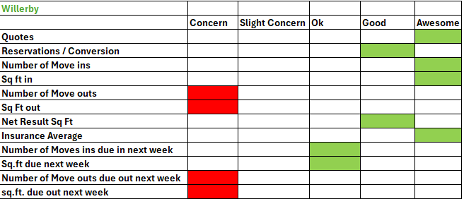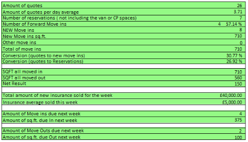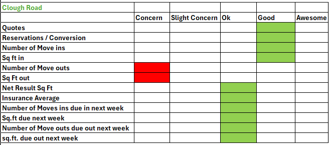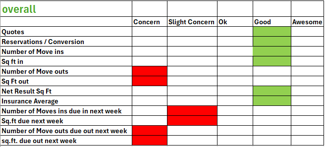Last week was a solid week β¦. Good Revenue, Good Move Ins, Good Conversions and Good Net Sq Ft