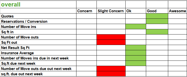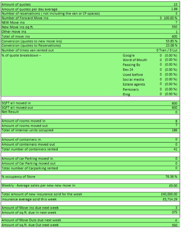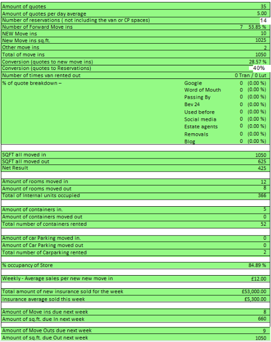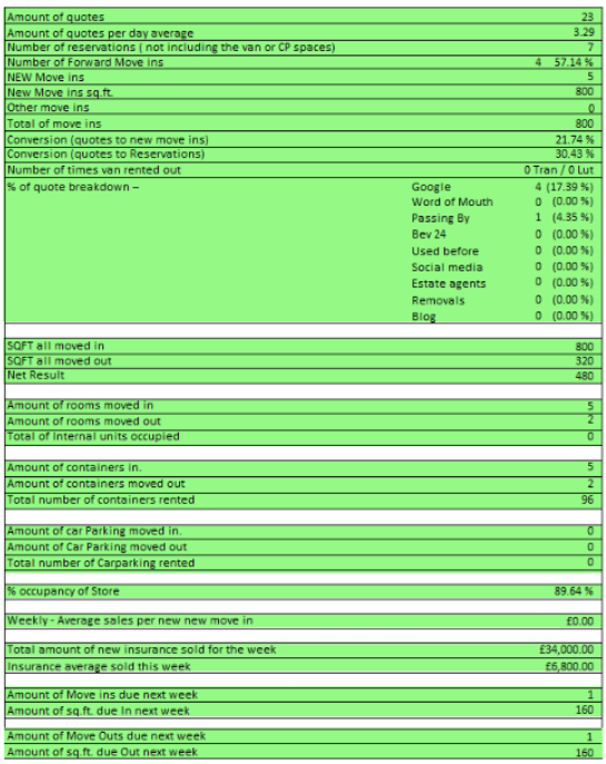 Weekly Numbers ... 39 Reservations … 6 Online and 30 MOVE INS